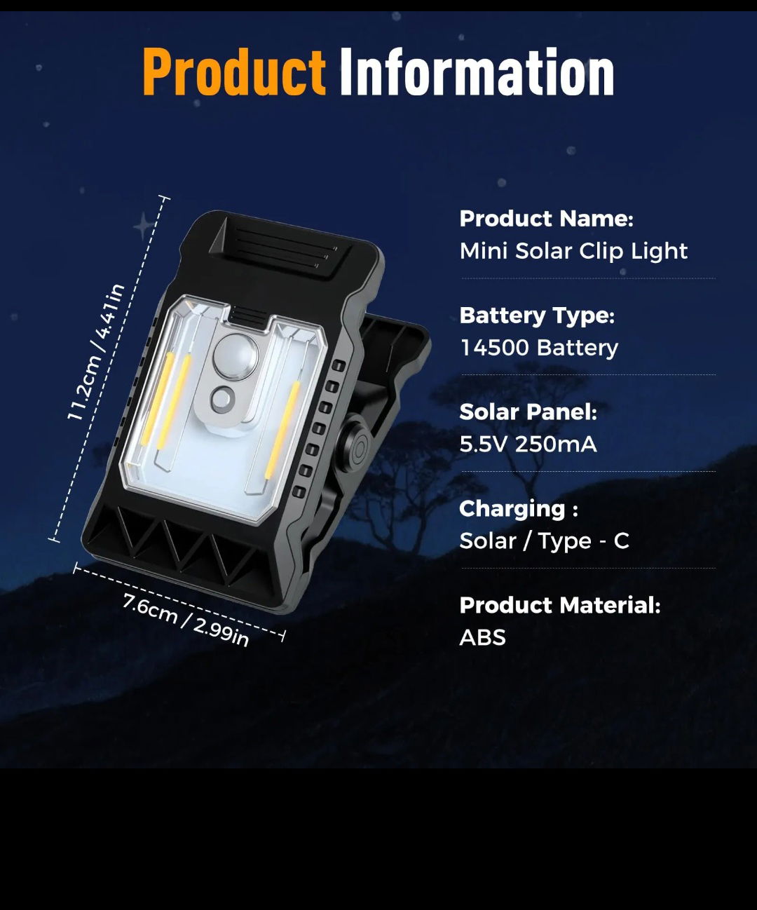 MINI LAMPARA CLIP CARGA SOLAR/ SENSOR DE MOVIMIENTO