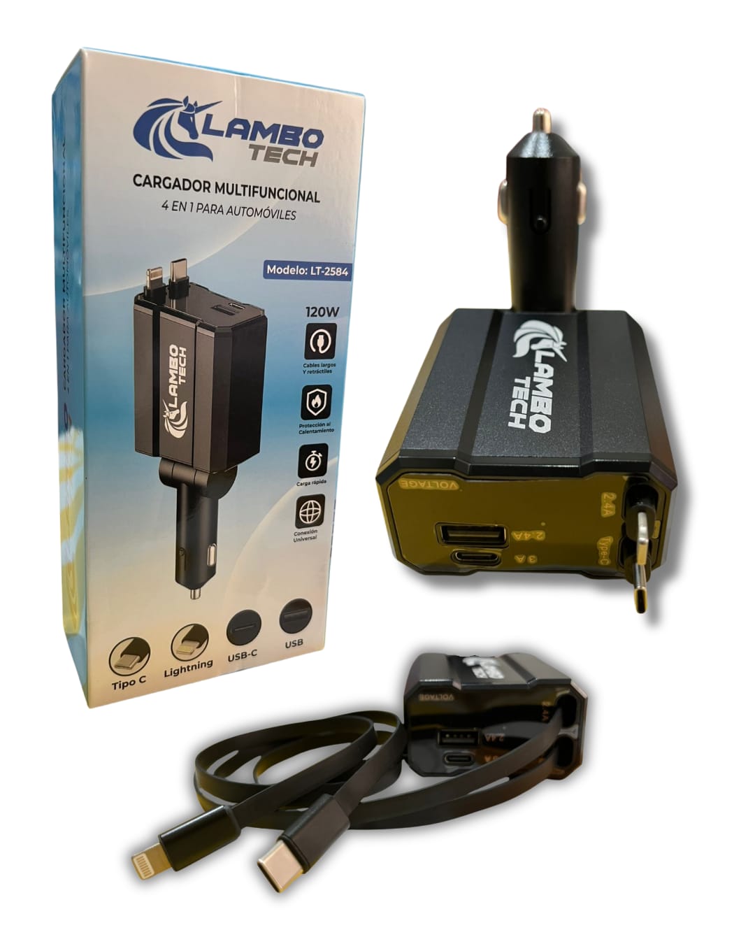 CARGADOR PARA AUTO 4 EN 1 CARGA RAPIDA LAMBO